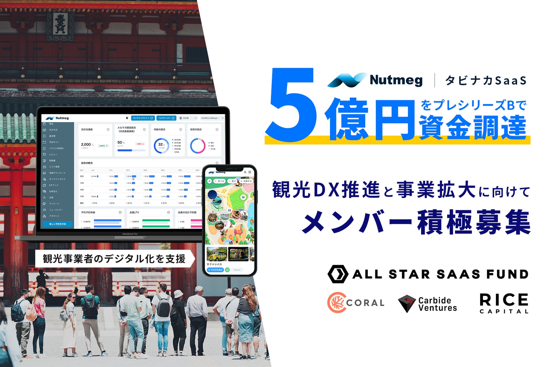 Nutmegは、観光DXを推進し、観光における顧客体験を向上させるSaaSプラットフォーム「Nutmeg(ナツメグ)」を提供するスタートアップです。インバウンド需要への適切な対応や業界内の人手不足を解消するため、ツアーの販売からタビナカでの現場業務まで一貫して対応できるオールインワン型のサービスを展開しています。2023年5月のシリーズA調達から約1年6ヶ月の間に、流通額350%以上増加、導入事業者数500社以上、NRR140%以上という成長を遂げています。