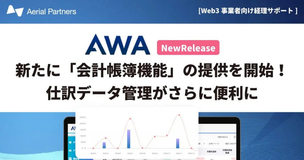 2024年5月20日には、Web3事業者向け経理サポートツール「AWA(Aerial Web3 Accounting)」にて、新機能「会計帳簿機能」の提供を開始しました。