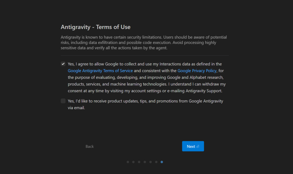 なお、Antigravityはコード処理にGoogleのクラウドサーバーを利用する。パスワードやAPIキーなどの機密情報は入力しないよう注意が必要だ。