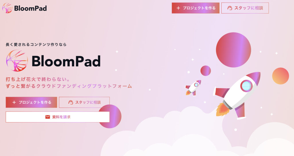 クラウドファンディングプラットフォームであるBloomPadの特徴を下記します。