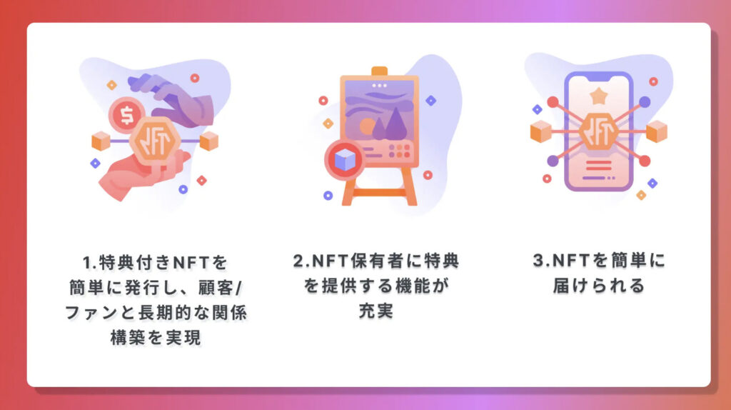 特徴1:特典付きNFTを簡単に発行し、顧客/ファンと長期的な関係構築を実現
