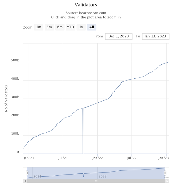 イーサリアム2.0のステーキングが開始されたのが約2年ほどなので、多くの投資家は、ステーキングを開始した頃よりもETH価格が下がっている含み損の状況のため、引き続きステーキング報酬を貰いながら、ETH価格が上がるのを待つのではないかと予想されています。