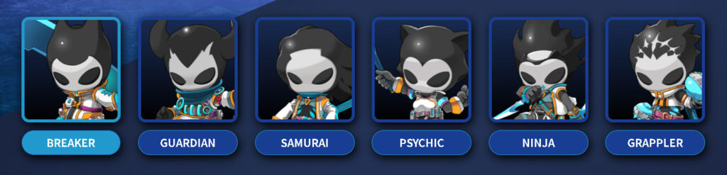 ゲーム開始時に自分の好きなスタイルのNFTキャラクター「XENO」を3体選ぶことができます。種類は、BREAKER(ブレーカー)、GUARDIAN(ガーディアン)、SAMURAI(サムライ)、PSYCHIC(サイキック)、NINJA(ニンジャ)、GRAPPLER(グラップラー)の6つがあります。