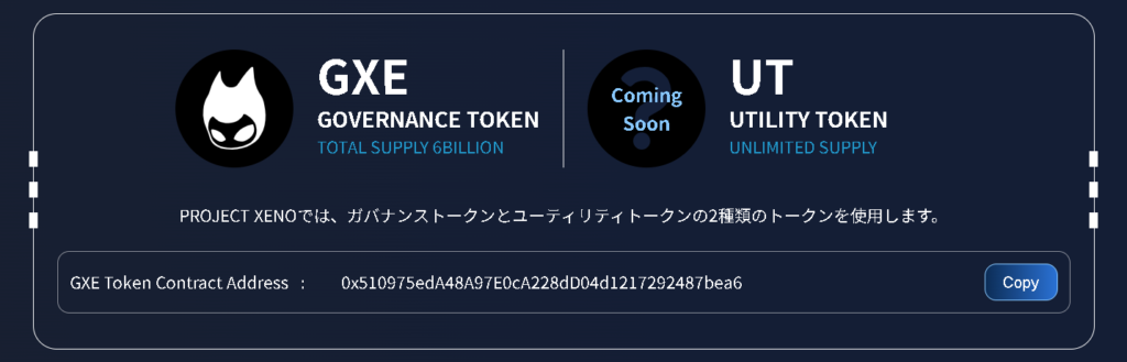 また、GXEはXENOのガバナンストークン(※1)となっており、それとは別にUTというユーティリティトークン(※2)も採用されています。