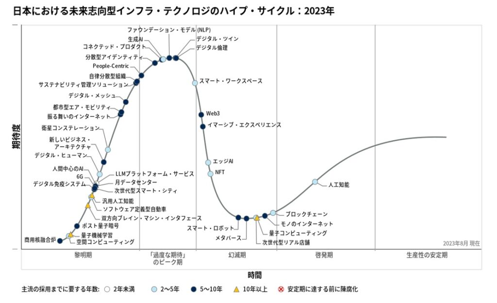 2023年8月にWeb3やNFT等今後の日本に大きな影響を与える技術を含む「日本における未来志向型インフラ・テクノロジのハイプ・サイクル」が発表されたので、以下考察します。