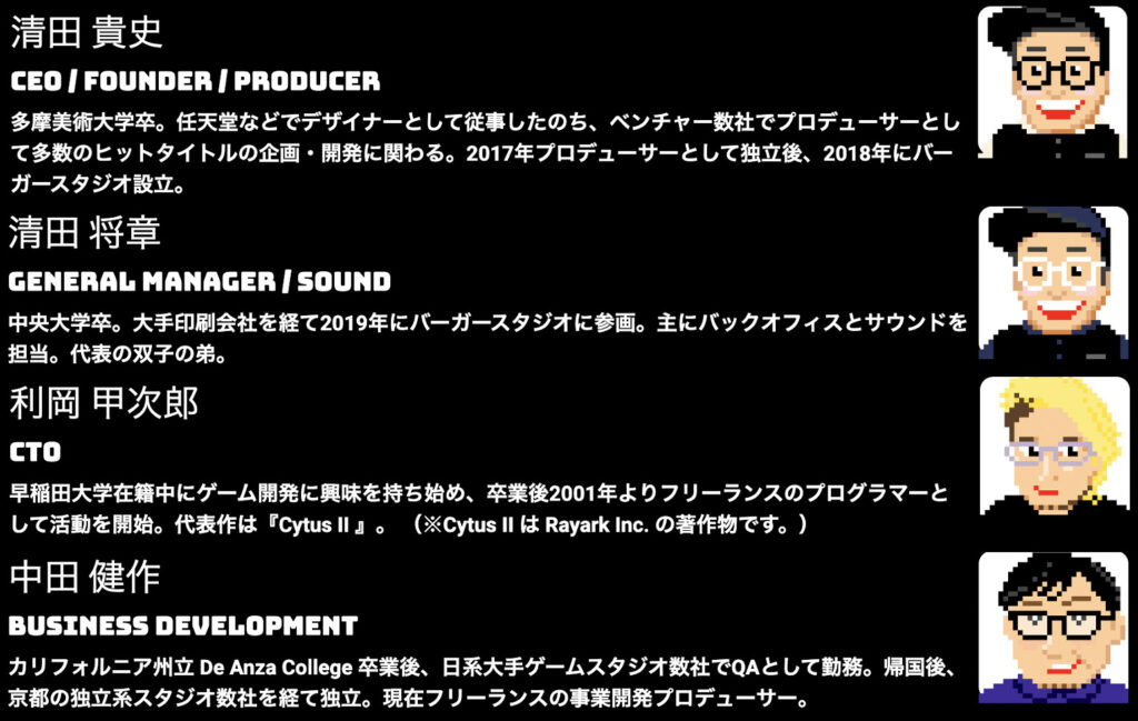 株式会社バーガースタジオ(以下バーガースタジオ)はWeb3を主軸の事業としたデジタルコンテンツの企画・開発・運用を行う会社であり、比較的小規模〜中規模の尖ったゲームコンテンツの開発を行うことが多くなっています。