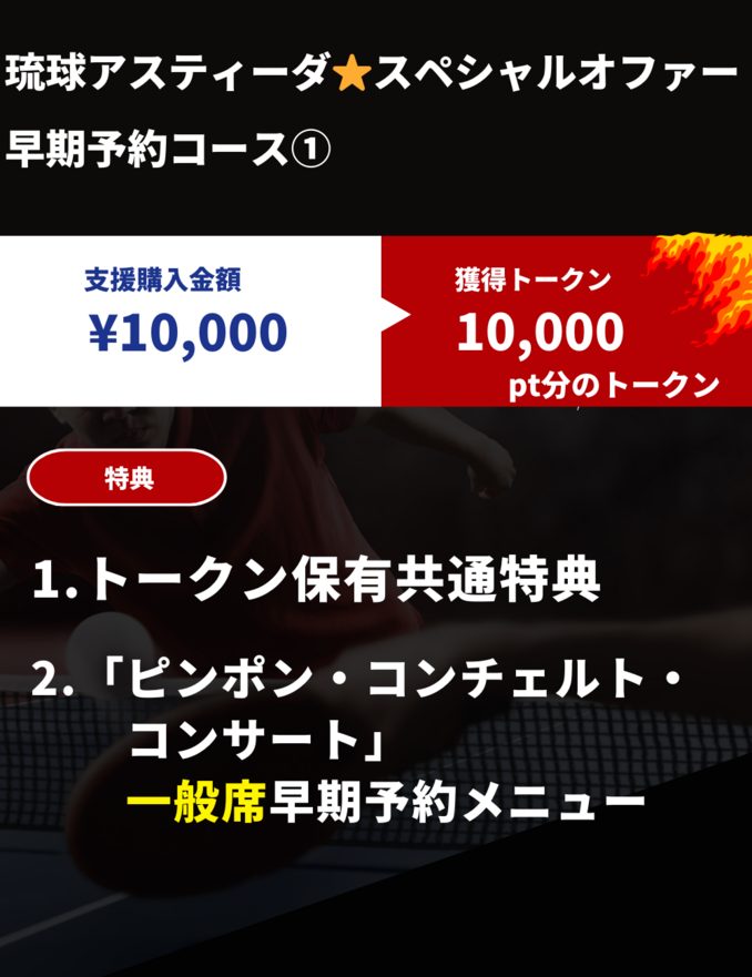 早川:「また、琉球アスティーダの選手とのオンライン交流会や卓球の試合ができたり、ロッカールームへの招待、ホーム戦の試合への帯同などの特典もあります。その他企業向けのイベントであるアスティーダエグゼクティブサロンへの参加権や卓球とオーケストラを組み合わせたコンサートへの早期予約の権利などもございます。」