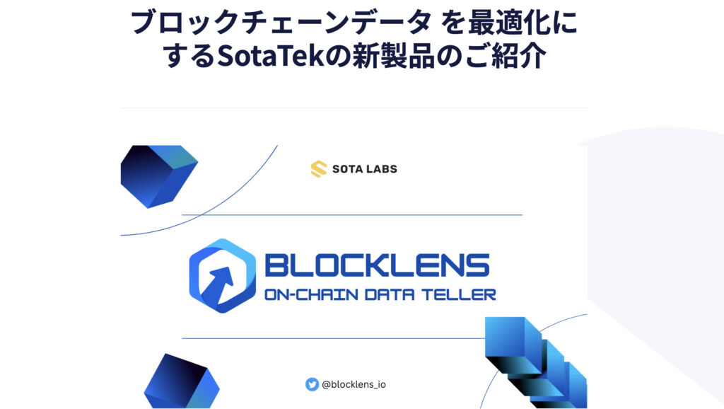 BLOCKLENS公式サービスサイト:https://sotatek.jp/news/sotatek-latest-blockchain-product-announcement/