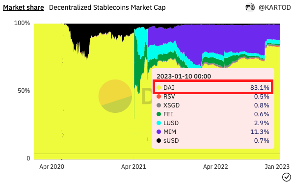 非中央集権型のステーブルコインの中ではDAIのシェアは80%を超えています。