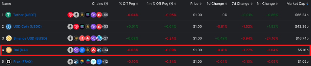 またステーブルコインという観点で比較すると、 DAIは第4位です。