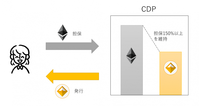※CDPとはCollateralized Debt Positionの略で、仮想通貨を預けることでステーブルコインを発行するスマートコントラクトのことです。