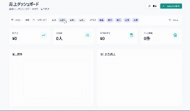 完成したダッシュボードは、単なる静的な表示ではない。フィルターで店舗を選択すると即座にグラフやKPIカードの数値が更新され、グラフ要素にはホバー時のアニメーションも実装されている。