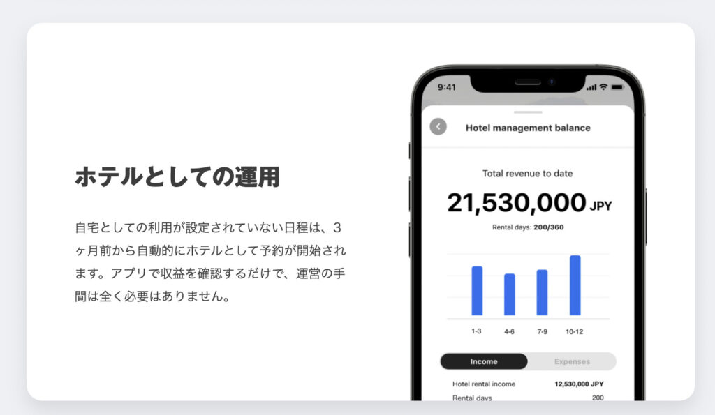 国内在住で自分の別荘として活用する投資家はもちろん、オンラインで購入でき、その運用パフォーマンスもワンタップで確認できるため、海外在住で運用のために購入する投資家からの注目も集めました。