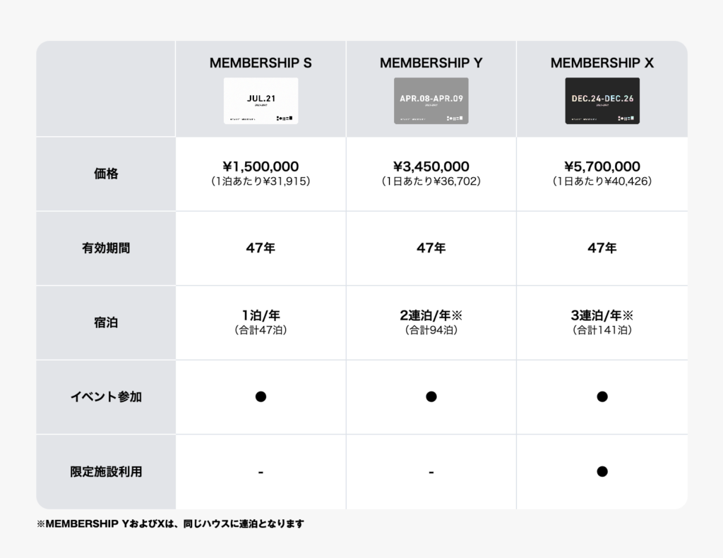 - 一棟 or シェア買い(年間30日単位)の購入スタイルが選べる