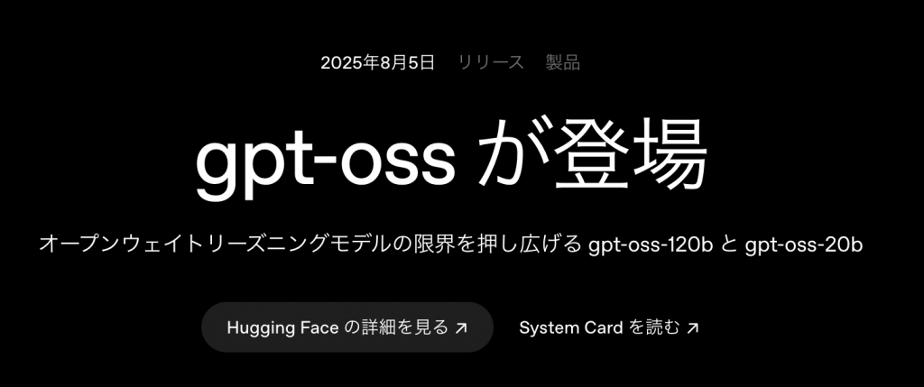 これまでにもWhisperやCLIPなどのモデルが公開されていますが、gpt-ossは、GPT-2以降で初めて登場した「オープンウェイト型」の言語モデルとして注目を集めています。