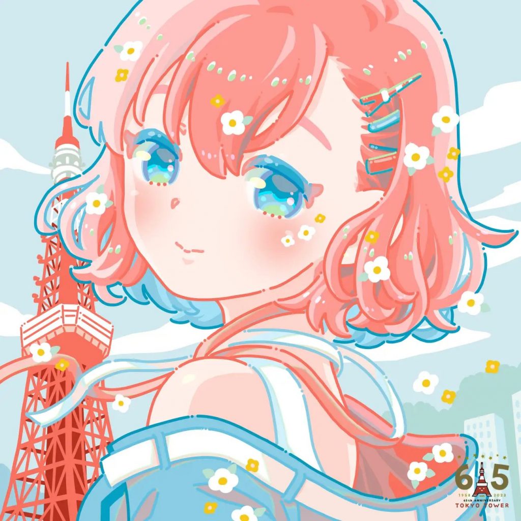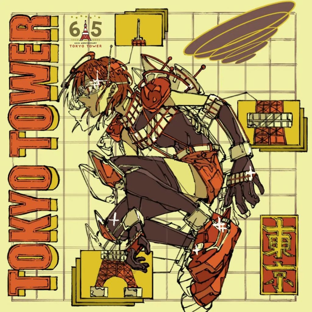 コメント:東京タワー65周年という記念すべき節目に携われてとても光栄です。 この作品は東京タワーの擬人化、そして解剖図という二つのコンセプトを軸に 東京タワー設立年50’sのレトロな配色で仕上げた思い出に残る作品となりました。