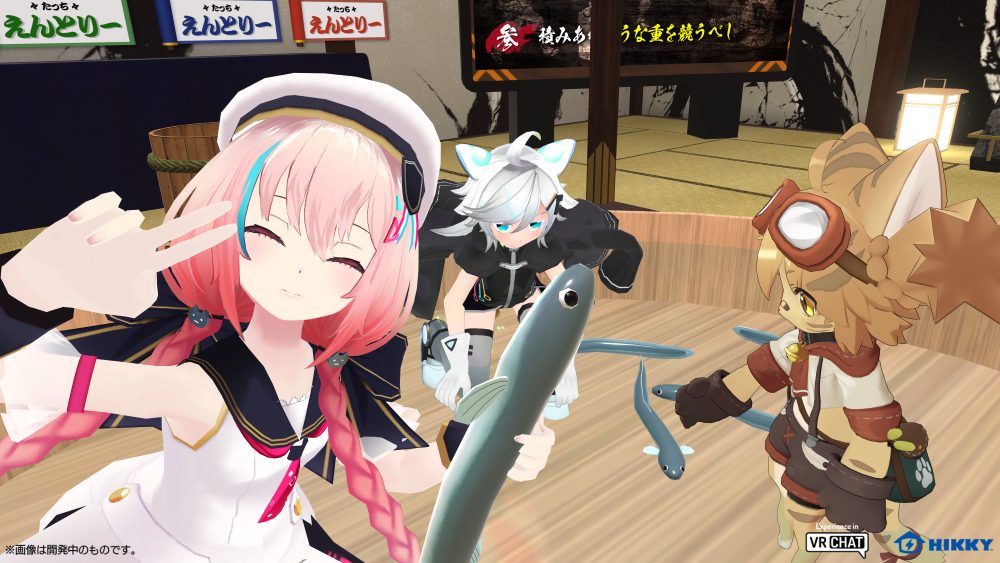 ここでは、泳いでいるうなぎを水槽の中に入って捕まえるゲームに挑戦できます。うなぎ独特のヌメリをメタバースでも再現するため、うなぎを掴んで持っていられる時間には制限があり、実際のつかみ取りと同じように「つかみどころのない」感触を体験できます。立体感と没入感が強く、老若男女問わず楽しめるコンテンツとなっていました!
