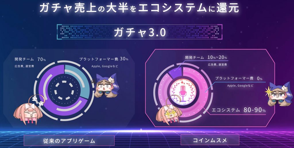 また、下記のようにガチャによるNFTの売上をエコシステムに還元することも大きな特徴となっています。