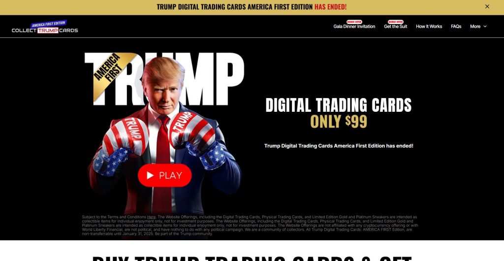 トランプは自身のWebサイトで、「America First Collection」という自身の画像が描かれた特別なトレーディングカードNFTを販売しました(現在は終了)。