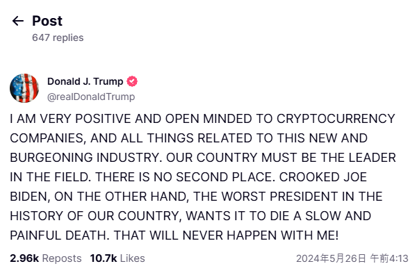 トランプは、自身も立ち上げに関わった右派のSNS「Truth Social(トゥルース・ソーシャル)」においても、アメリカにおけるWeb3・仮想通貨の重要性についてコメントを残しています。